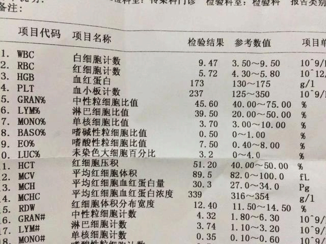 血白细胞 3.5-9.5*10^9/L