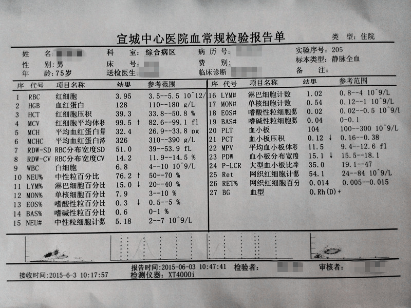 血常规检查结果