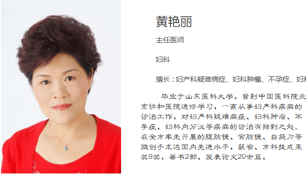 黄艳丽,德州市人民医院妇科、生殖医学科主任医师,教授,副院长,全国三八红旗手。毕业于山东大学医学院。
