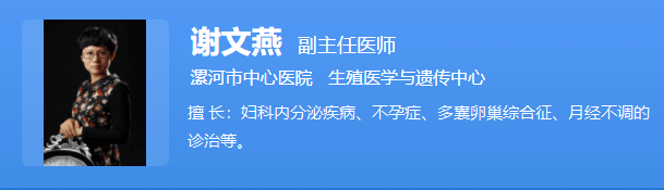 谢文燕,漯河市中心医院生殖医学与遗传中心,副主任医师。