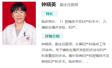 钟晓英,中信湘雅生殖与遗传专科医院生殖中心副主任医师,从事妇产科及生殖医学临床工作20余年。